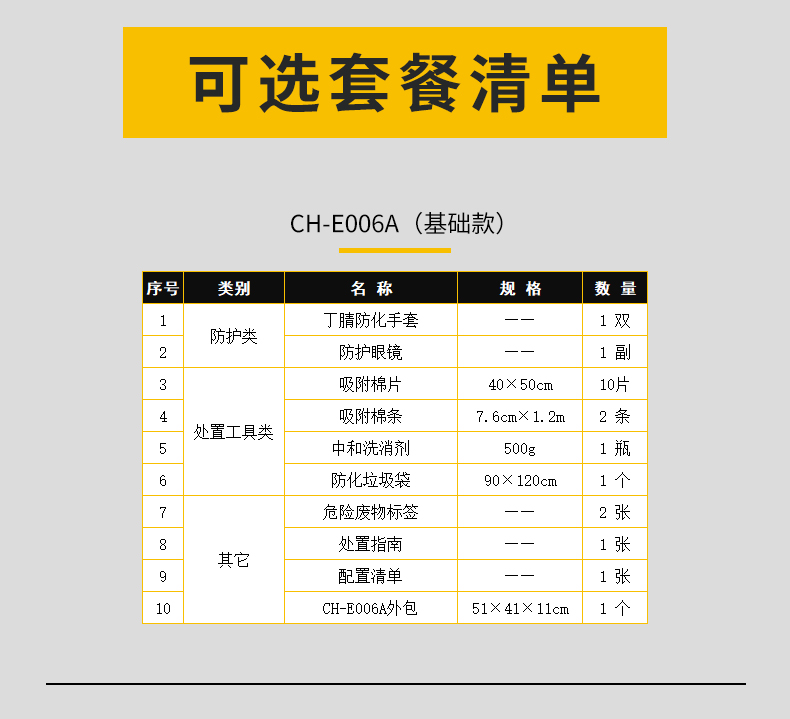 產(chǎn)品名稱: | 化學(xué)泄漏處置包 (品質(zhì)款) | ||