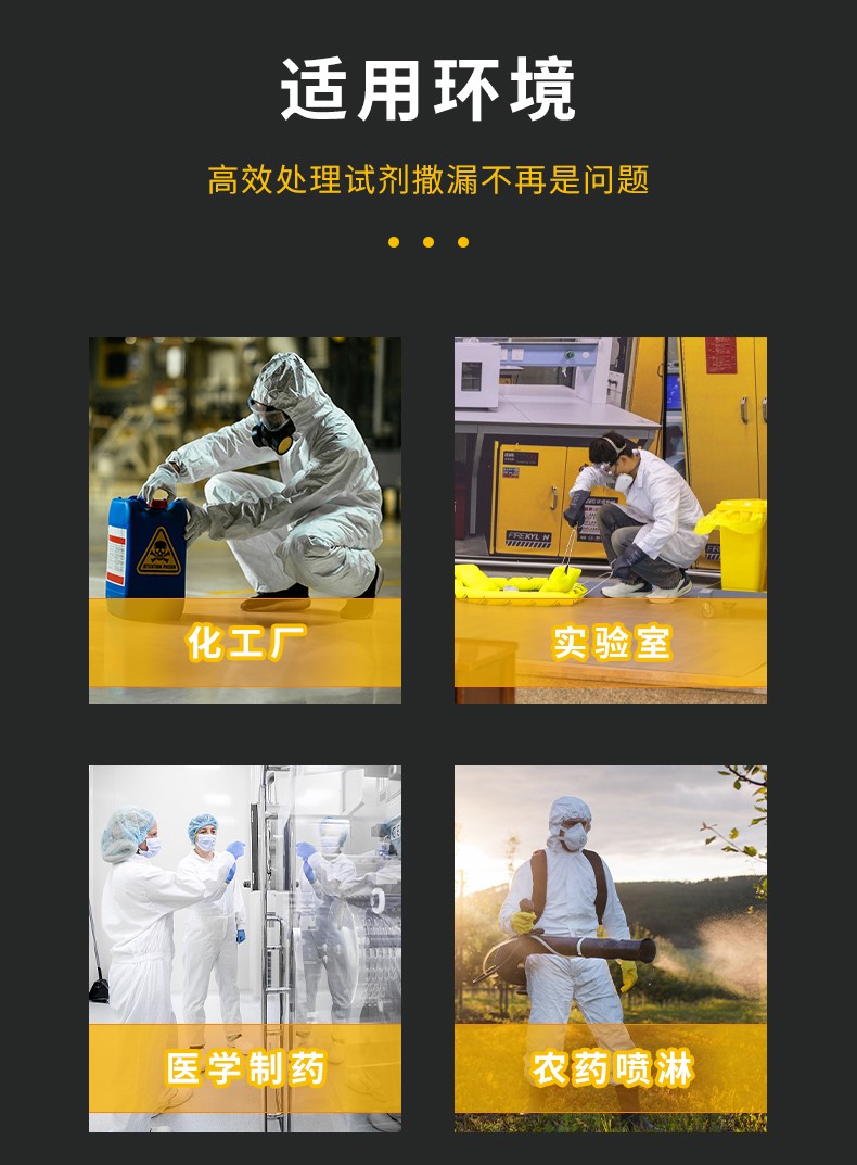 功能介紹: | 能快速吸收酸堿廢液及化學品泄漏,耐腐蝕材質,集吸收、阻隔于一體。 |