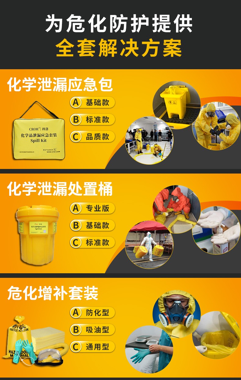 科洛(CROR)作為應急·醫療·防護領域產品集成供應商,根據新標文件危險化學品單位應急救援物資配備要求,為作業場所救援物資、應急救援人員個體防護裝備配備提供一站式產品采購解決方案。 |